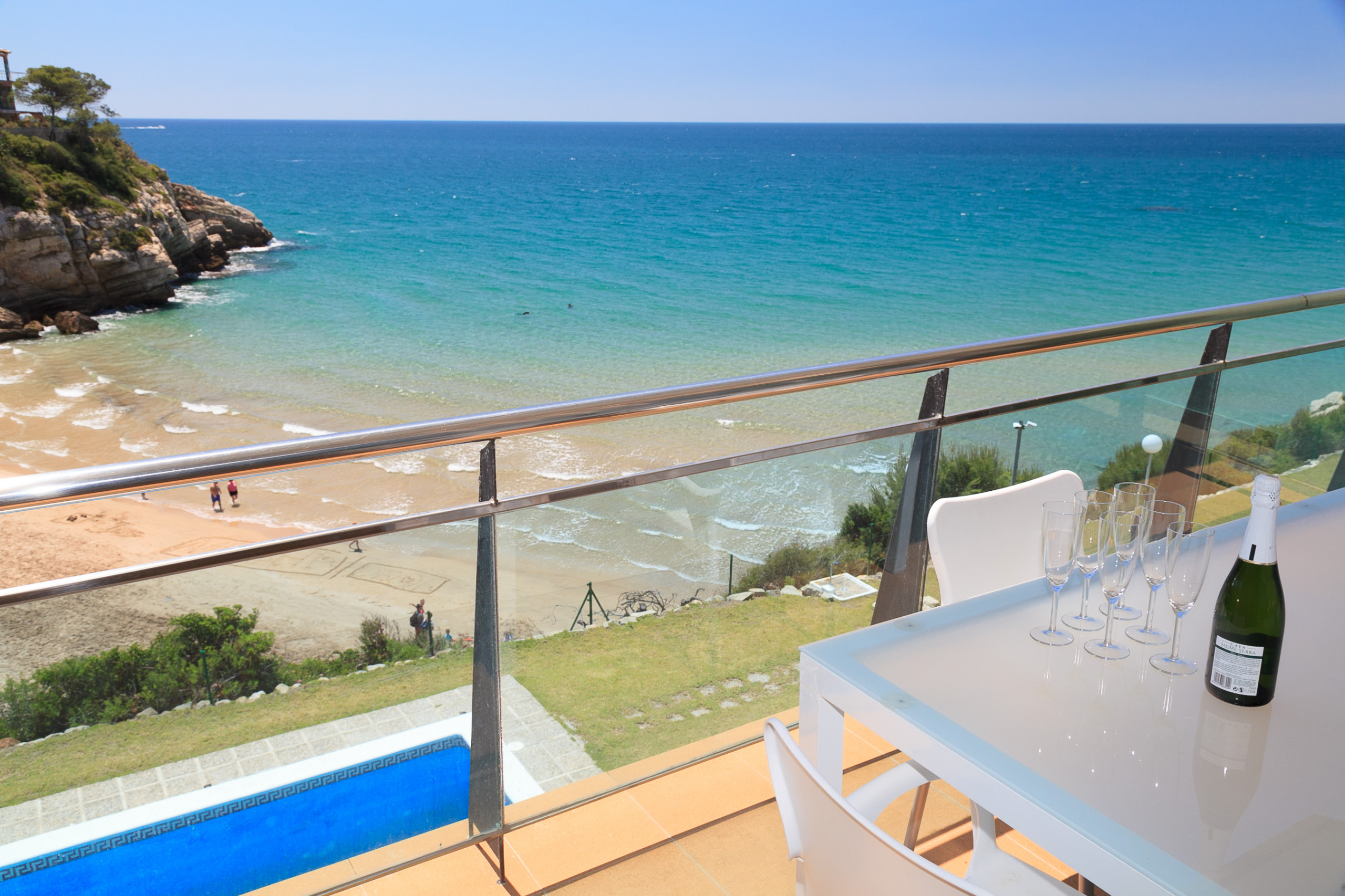 La vue sur la mer, la piscine au pied de l’immeuble , le sentier le long de la côte , la mer translucide 🤩